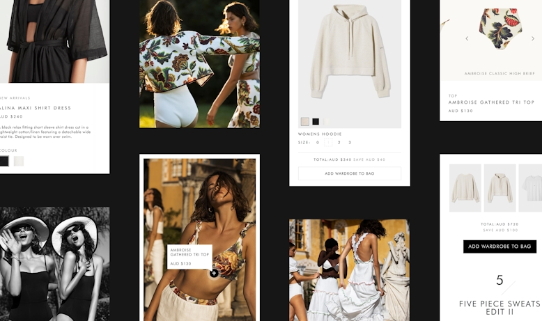 Curation underpins much of our work with SIR the Label. That curation is for the brand; multiple fluid page templates, a highly-configurable header navigation, custom interactive campaign pages—as well as for their discerning customers; shop by wardrobe feature, visual mix-and-match to pick the perfect bikini and helpful AI-driven suggestions throughout the browsing journey.