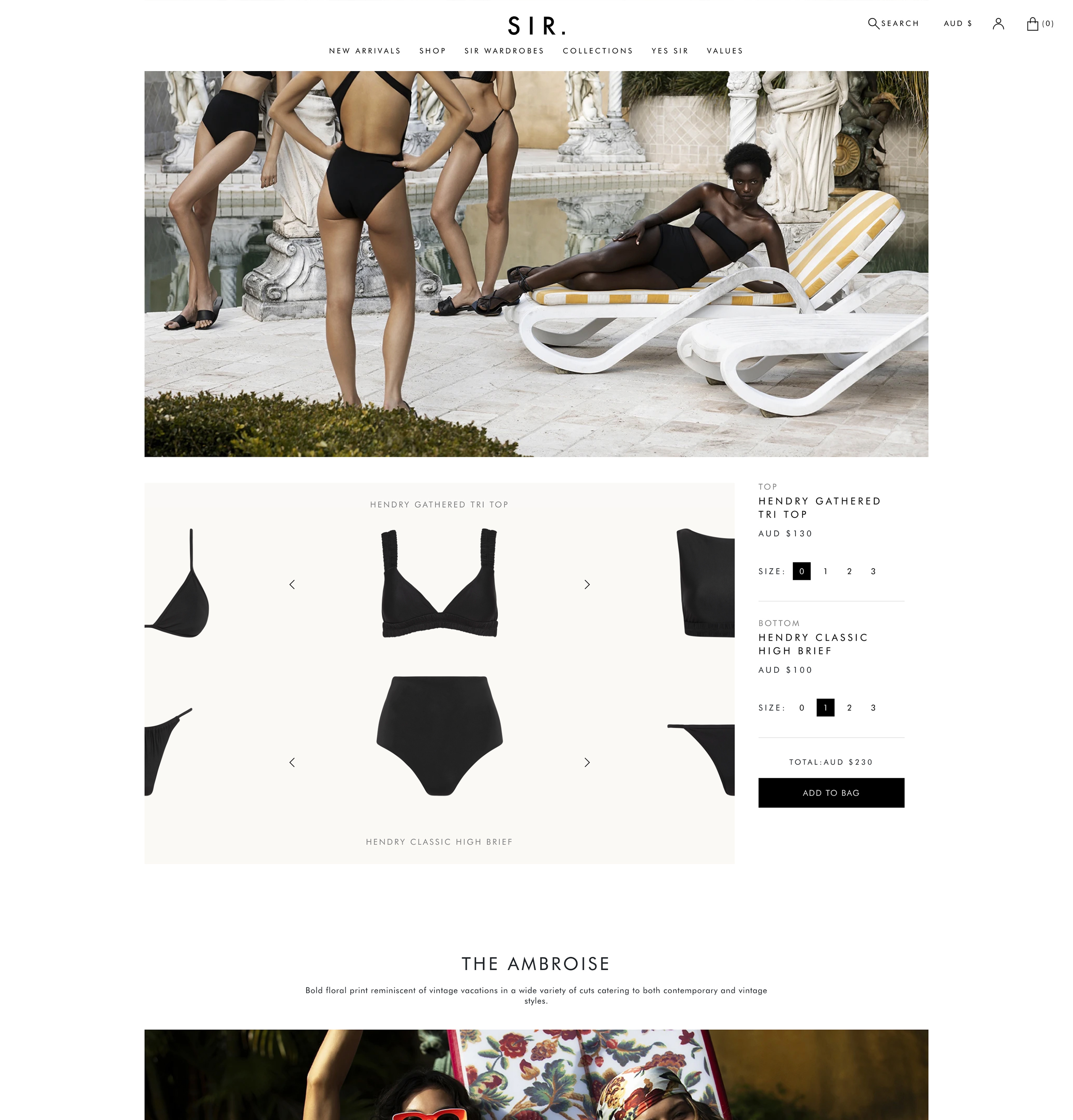 Curation underpins much of our work with SIR the Label. That curation is for the brand; multiple fluid page templates, a highly-configurable header navigation, custom interactive campaign pages—as well as for their discerning customers; shop by wardrobe feature, visual mix-and-match to pick the perfect bikini and helpful AI-driven suggestions throughout the browsing journey.
