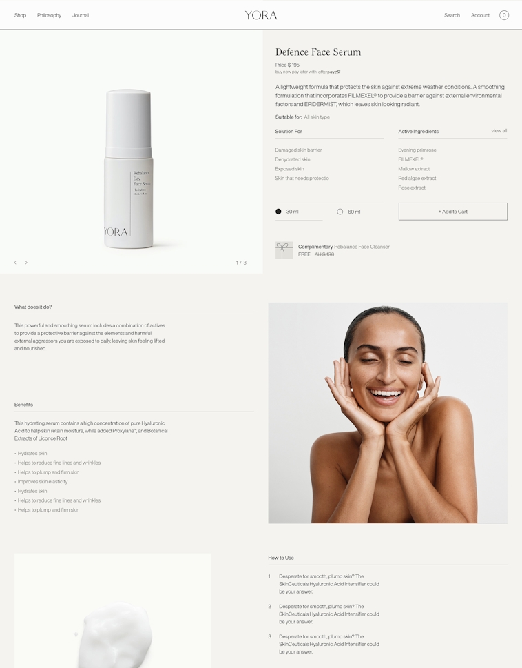 YORA is an Australian startup, founded to provide a wholistic approach to skincare. Inspired by Director of Innovation, Antoinette Barnardo, their unique product range is a seamless blend of both science and nature, with an unwavering commitment to evidence-based ingredients. With plans to bring the range to a global audience from the outset, the team at YORA believed that Shopify Plus offered their new brand the right tools for success.